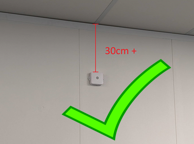 - Mount above person height if on wall. Avoid mounting closer than 30cm from ceiling and corner/walls. If mounting on ceiling, avoid mounting closer than 30cm from walls.