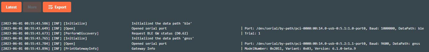 In Devices, all of the devices that are connected to a selected gateway, plus unconnected devices nearby can be requested.