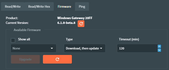 Several gateways can be firmware upgraded at once if they have the same type - for example, MeshConnect 2011.